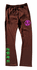 100% Fleece Brown Stacked Flare Legged Joggers with Purple and Green Puff Graphics